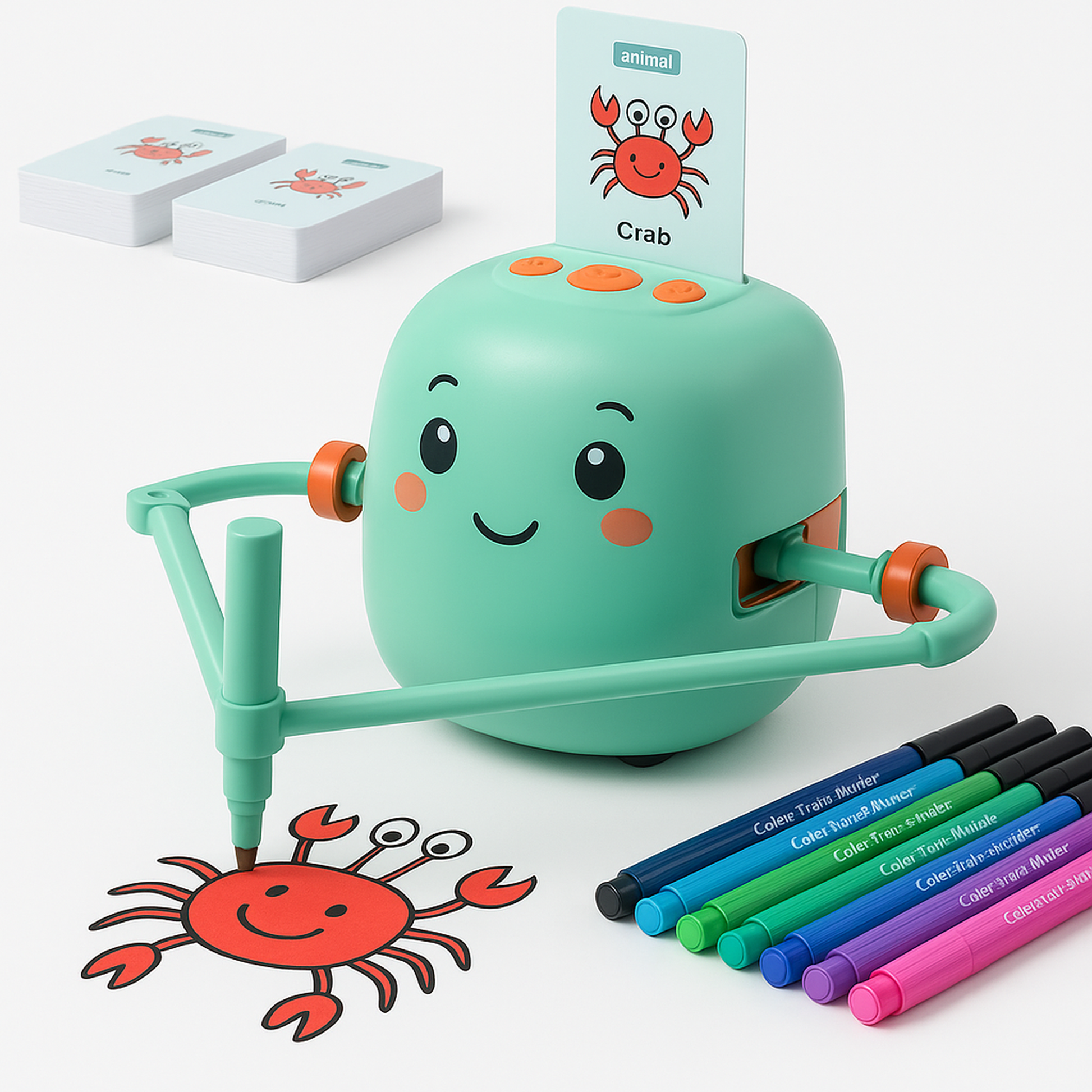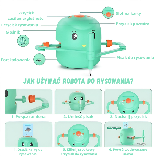 Dziecko może rysować razem z robotem, ucząc się kształtów, proporcji i słów po angielsku.